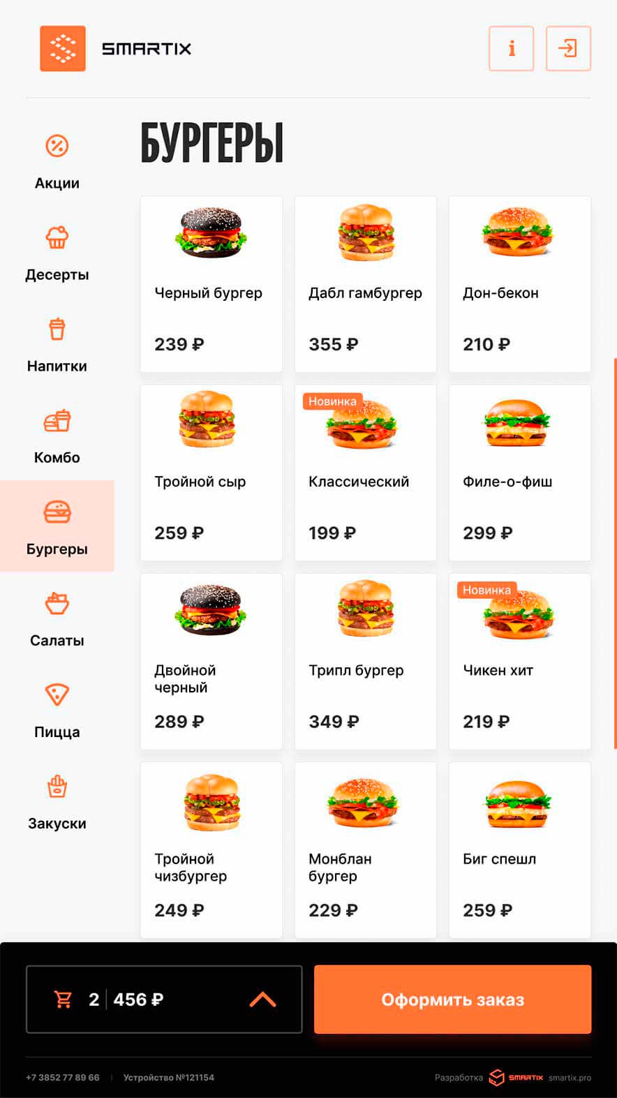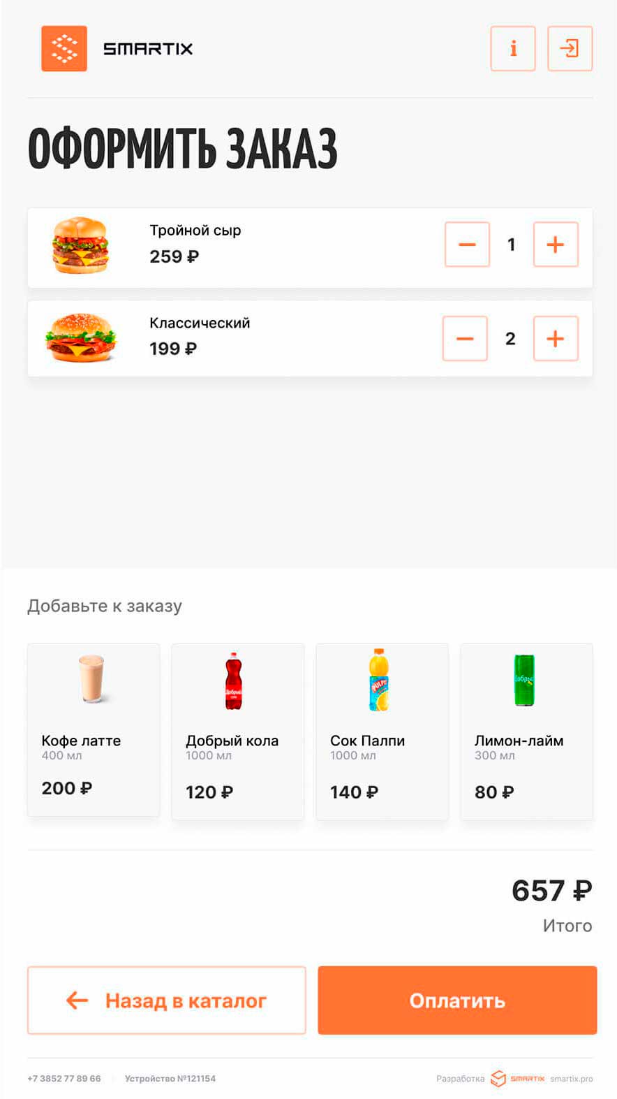 1. Компания Smartix — это объединение профессионалов, специализирующихся на различных направлениях автоматизации бизнеса с использованием киосков самообслуживания. Самообслуживание в общепите — одно из наших ключевых направлений, мы сформировали отдельное подразделение, которое профессионально разрабатывает и внедряет ПО киосков для фаст-фуда, ресторанов и кафе. Мы отлично знаем отраслевые потребности заказчиков и конечных клиентов!