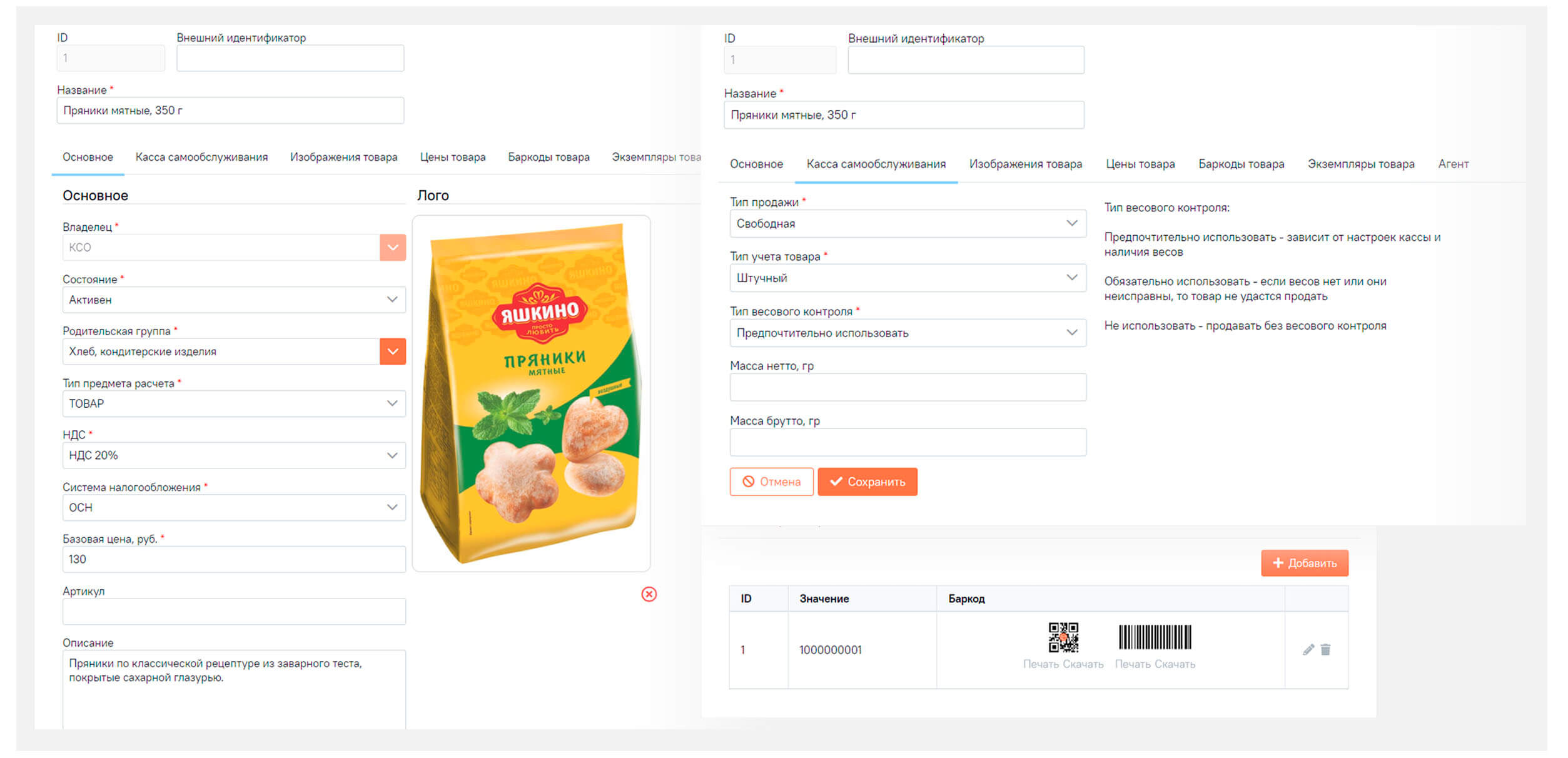 - Селф-чекаут товаров со штрихкодами, взвешенных товаров