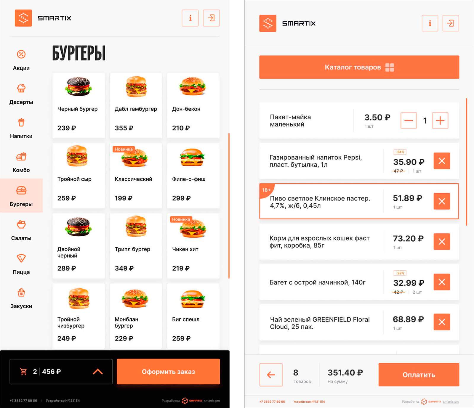 Интеграктивное меню, гибкий функционал, прием оплаты